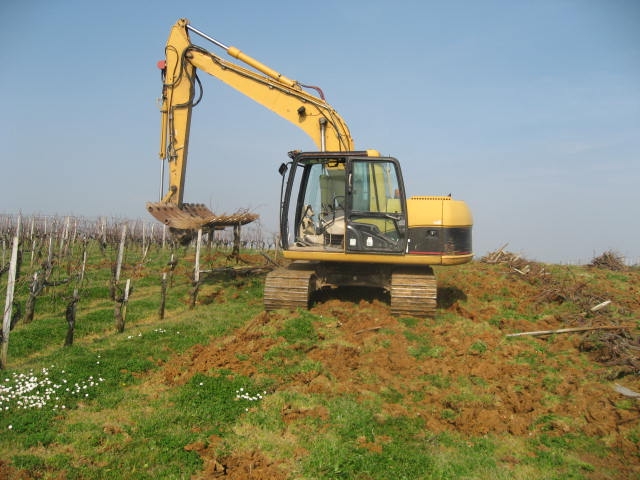 - Arrachage de la vigne (machine classique ou pelle mécanique avec rateau fléco),